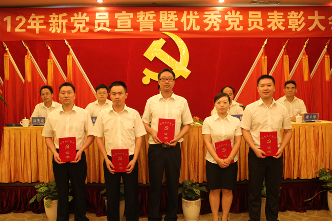 公司黨委書記楊國平作重要講話。他代表公司黨委向獲得優(yōu)秀黨員稱號的同志表示祝賀,向剛剛加入到黨的隊伍中來的新黨員表示熱烈的歡迎。楊國平董事長就創(chuàng)先爭優(yōu),進一步加強黨組織建設,促進公司又好又快發(fā)展講了三點意見:一是抓好創(chuàng)先爭優(yōu),促進公司科學發(fā)展;二是加強黨員自身建設,提升公司人才實力;三是加強黨風廉政建設,樹立黨員的良好形象。要求全體黨員以受到表彰的同志為榜樣,堅持黨的根本宗旨,堅持科學發(fā)展觀,振奮精神,同心同德,真抓實干,開拓創(chuàng)新,以爭創(chuàng)一流的精神狀態(tài)和卓有成效的工作業(yè)績來促進公司又好又快發(fā)展,為長株潭“兩型社會”建設和湖南的發(fā)展貢獻新的更多力量,以優(yōu)異的業(yè)績向黨的十八大勝利召開獻禮。